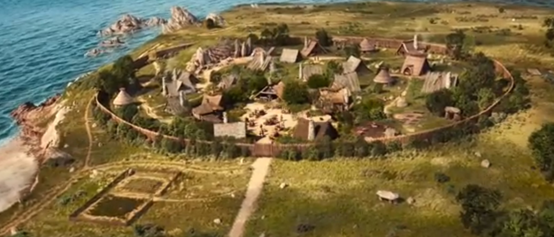 Übrigens sieht es auch ein wenig so aus, als befände sich vorne rechts im Dorf die Schule