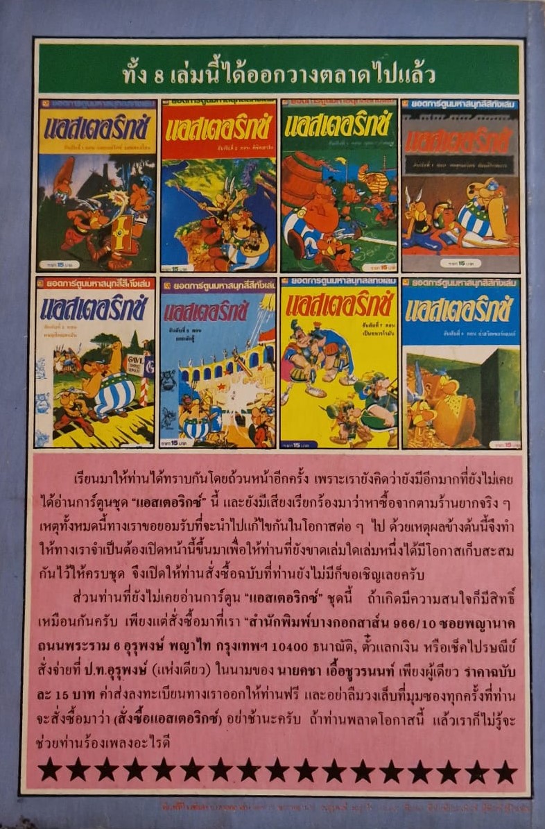 Das ist Thai. Herausgeber ist Bangkok News Publishing House. Ein Impressum irgendeiner Art gibt es nicht. Auf der Rückseite meiner Hefte wird auch Tim und Struppi beworben. In dem langen Text auf der Rückseite stehen Instruktionen, wie man verpasste Ausgaben beim Verlag nachbestellen konnte.
