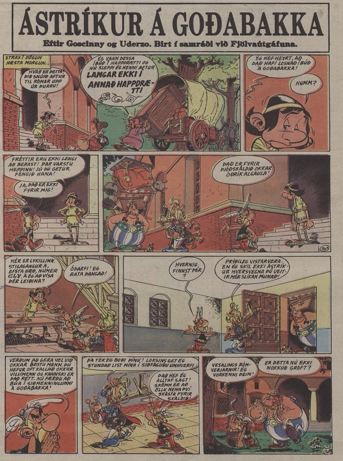 A propos - aber auf Isländisch: eine nicht als Album und nicht zuende veröffentlichte Übersetzung der Trabantenstadt in Lesbók Morgunblaðsins ist auf Tímarit.is archiviert: Ástríkur á Goðabakka