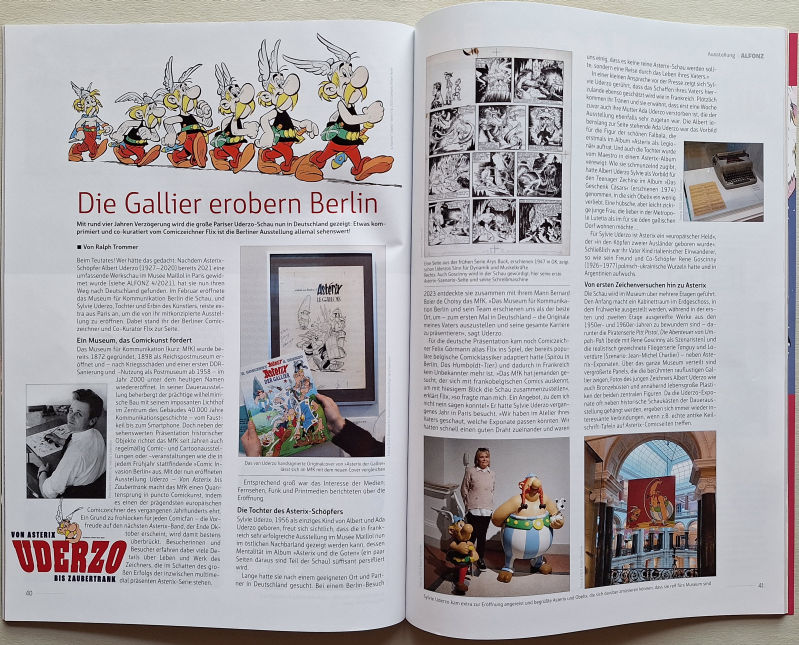 in der aktuellen Ausgabe des Comicfachmagazins Alfonz - Der Comicreporter, Nr. 2/2025 für April bis Juni 2025, ist ein drei Seiten langer Artikel von Ralph Trommer des Titels: "Die Gallier erobern Berlin" abgedruckt. Darin wird über die Ausstellung "Uderzo - Von Asterix bis Zaubertrank" im Museum für Kommunikation Berlin berichtet.