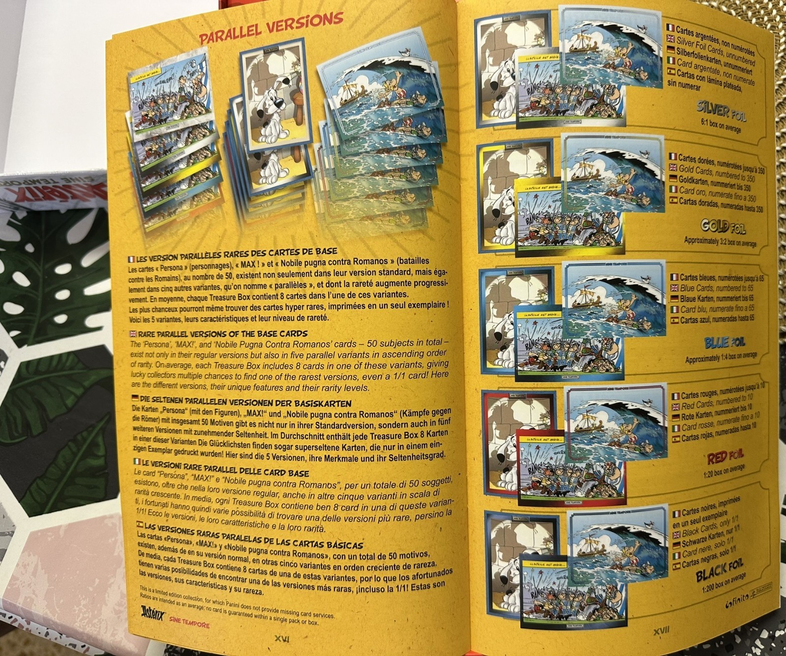 "In jeder Asterix Sine Tempore Treasure Box findet sich außerdem der vollständige Leitfaden zur Kollektion mit allen Details zu Cards und Kategorien."
