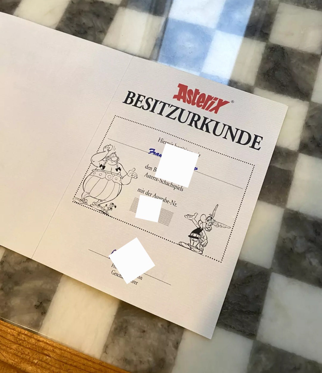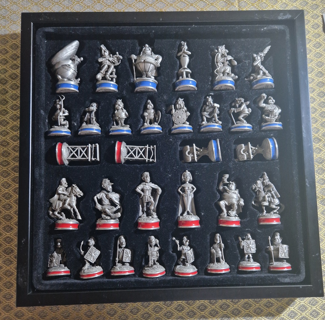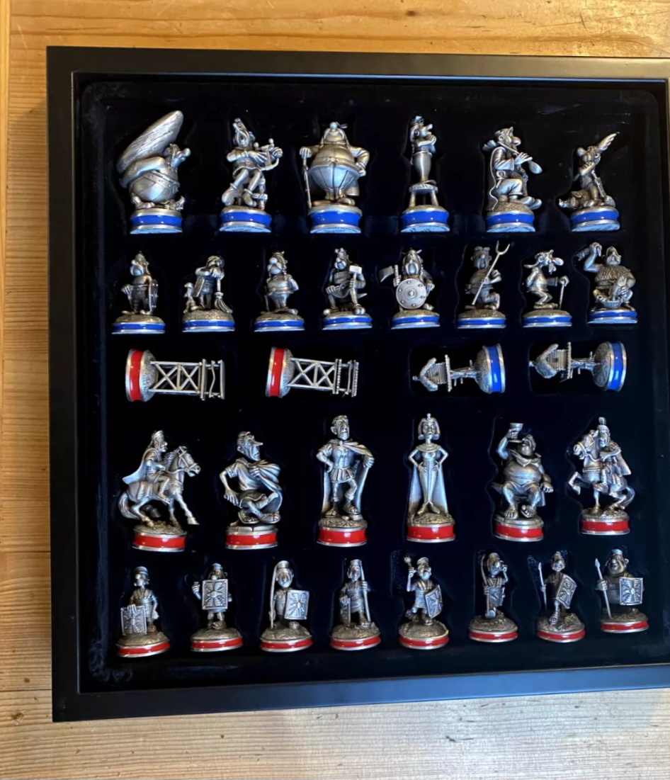 Habe auch schon das Selbe aber mit farbigen Figuren gesehen. Aber da vermute ich es sind einfach die Figuren vom biligerem Standart Asterix Schach .