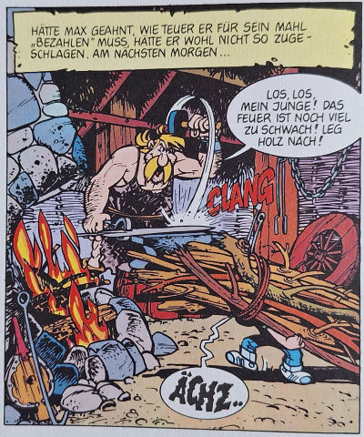 In Heft Nr. 21 (1989) "Max & Luzie - Bei den Germanen" treffen die Protagonisten auf wildschweinessende Germanen in einem Dorf, die sehr an einige uns wohlbekannte Gallier erinnern (ein Heft "Bei den Galliern" gibt es übrigens nicht) sowie einige Römer, die bis hin zu den auffälligen Ösen an den Helmen große Ähnlichkeiten mit jenen haben, die das kleine, uns wohlbekannte gallische Dorf umzingeln. Am auffälligsten aber ist die Ähnlichkeit des germanischen Schmieds mit einem gewissen gallischen Schmied, der sein Zwillingsbruder sein könnte: