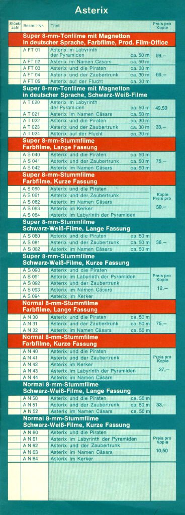 habe eine liste der bisher erschienen Asterix Super8 (Film Office) Filme gefunden .