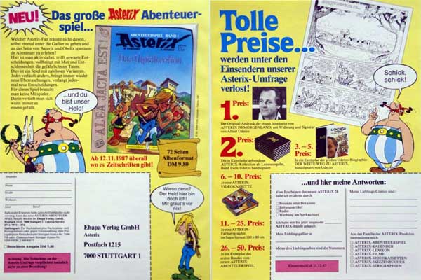 - Asterix im Morgenland, 1987, Werbebeilage zum Start der Abenteuerspielbuchreihe "Alea Jacta Est!" bei Ehapa.