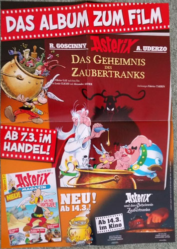 - Asterix und das Geheimnis des Zaubertranks, 2019, Werbeposter mit der Abbildung des Albums zum Film als Beilage zum Kauf eines der Bücher zum Film im Ehapa-Shop.