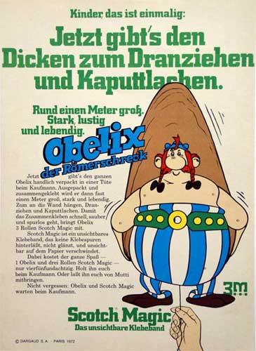 - Asterix und der Kupferkessel, 1972, Werbebeilage zum Obelix-Hampelmann von Scotch Magic (3M).