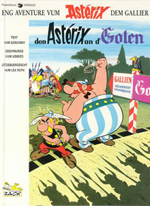 Eine weitere Besonderheit in der Mundartserie stellen die Mundartbände in luxemburgischer Sprache dar, hier als Beispiel 'Asterix bei den Olympischen Spielen'. Sie sind seit 1988 im Verlag Edition Saint-Paul erschienen.